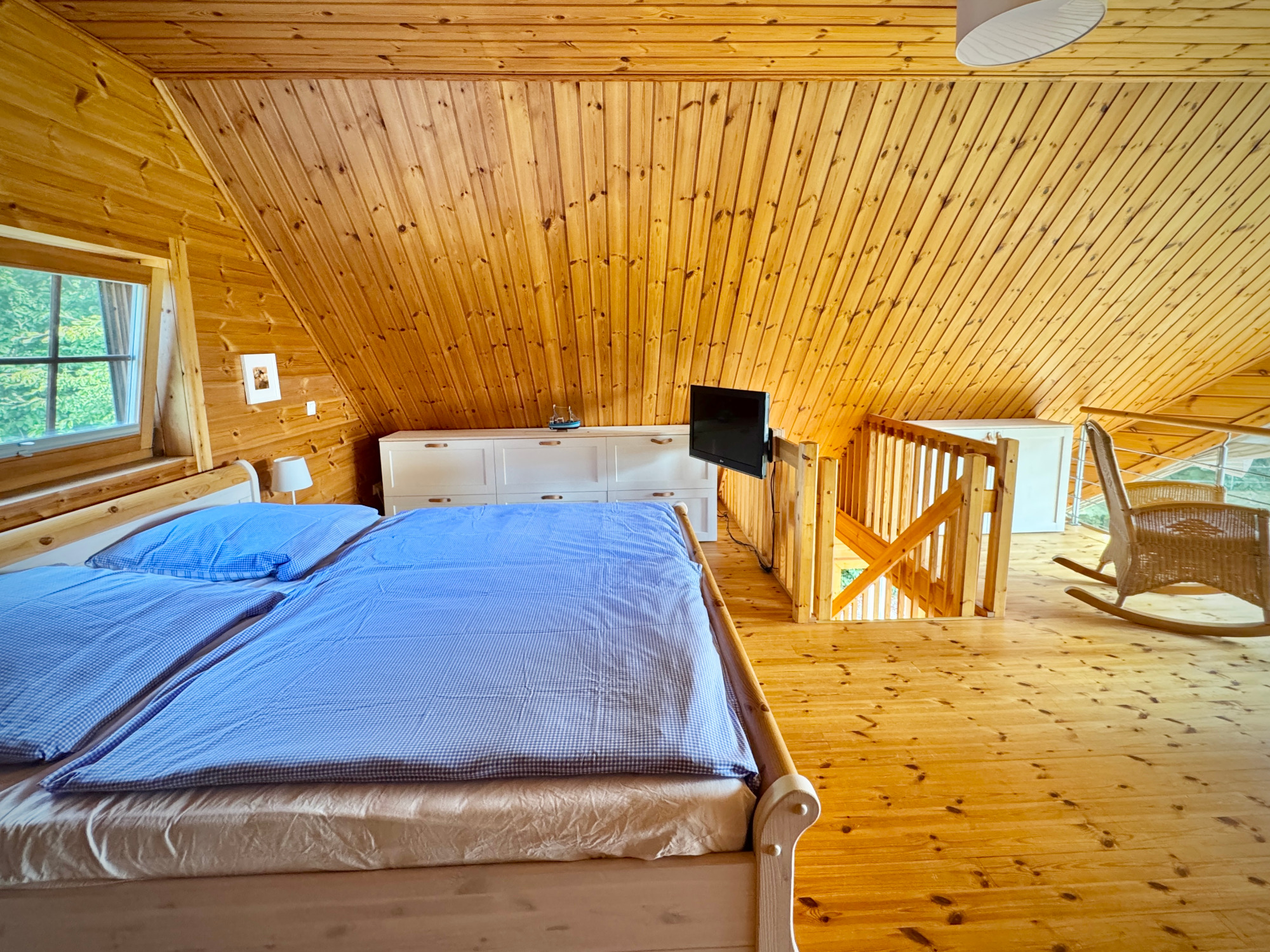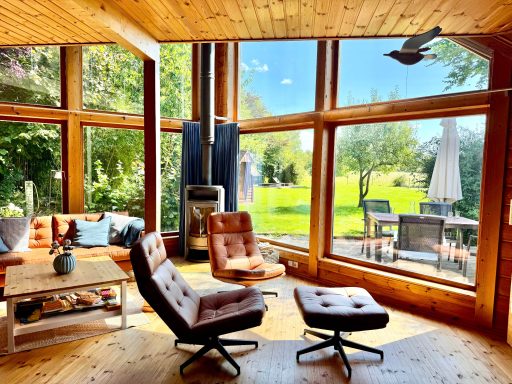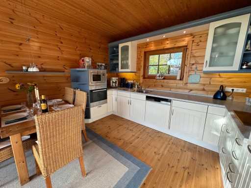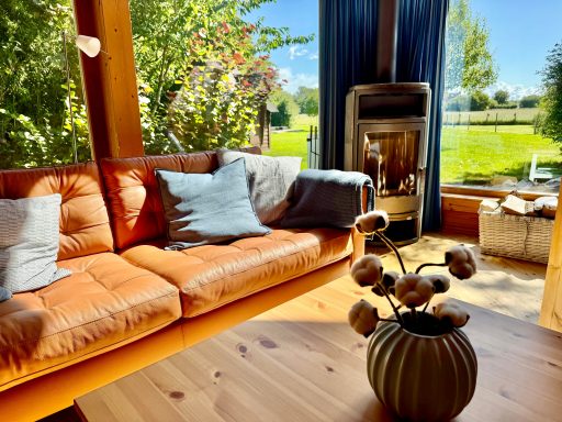 Das voll ausgestattete finnische Holzhaus ist der ideale Ort für einen entspannten, naturnahen Urlaub an der Ostsee. Herz des gemütliches Hauses ist der große, lichtdurchflutete Wohnbereich im Erdgeschoss mit Kamin, einem Essplatz und einer umfangreich ausgestatteter Küche mit Geschirrspüler, Waschmaschine, Mikrowelle, Nespresso-Kapselmaschine und vielem mehr. Im Erdgeschoss liegt auch das großzügige Bad mit Sauna, Whirl-Badewanne und Dusche und ein Schlafzimmer mit Doppelbett (1,40m x 2,00m). Auf der offenen Galerie befindet sich das zweite Schlafzimmer mit Doppelbett (1,80m x 2,00m) und ein Arbeitsplatz mit Blick auf den Garten und in Richtung Ostsee und Leuchtturm Falshöft.