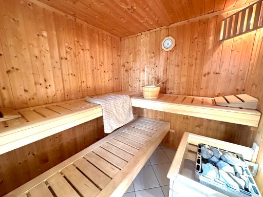 Das Ferienhaus bietet nicht nur durch seine vielseitige, schöne Umgebung einen ideales Ort zur Erholung. Das gemütliche Holzhaus lässt direkt Urlaubstimmung aufkommen und ist zudem mit allerlei Komfort zur Entspannung ausgestattet. Mit Sauna und Whirl-Badewanne haben Sie Ihren eigenen Wellness-Bereich im Haus. Im Sommer bietet der große Garten mit Liegestühlen einen Ort der Ruhe. Im Winter holt der Kamin die Gemütlichkeit ins Haus.