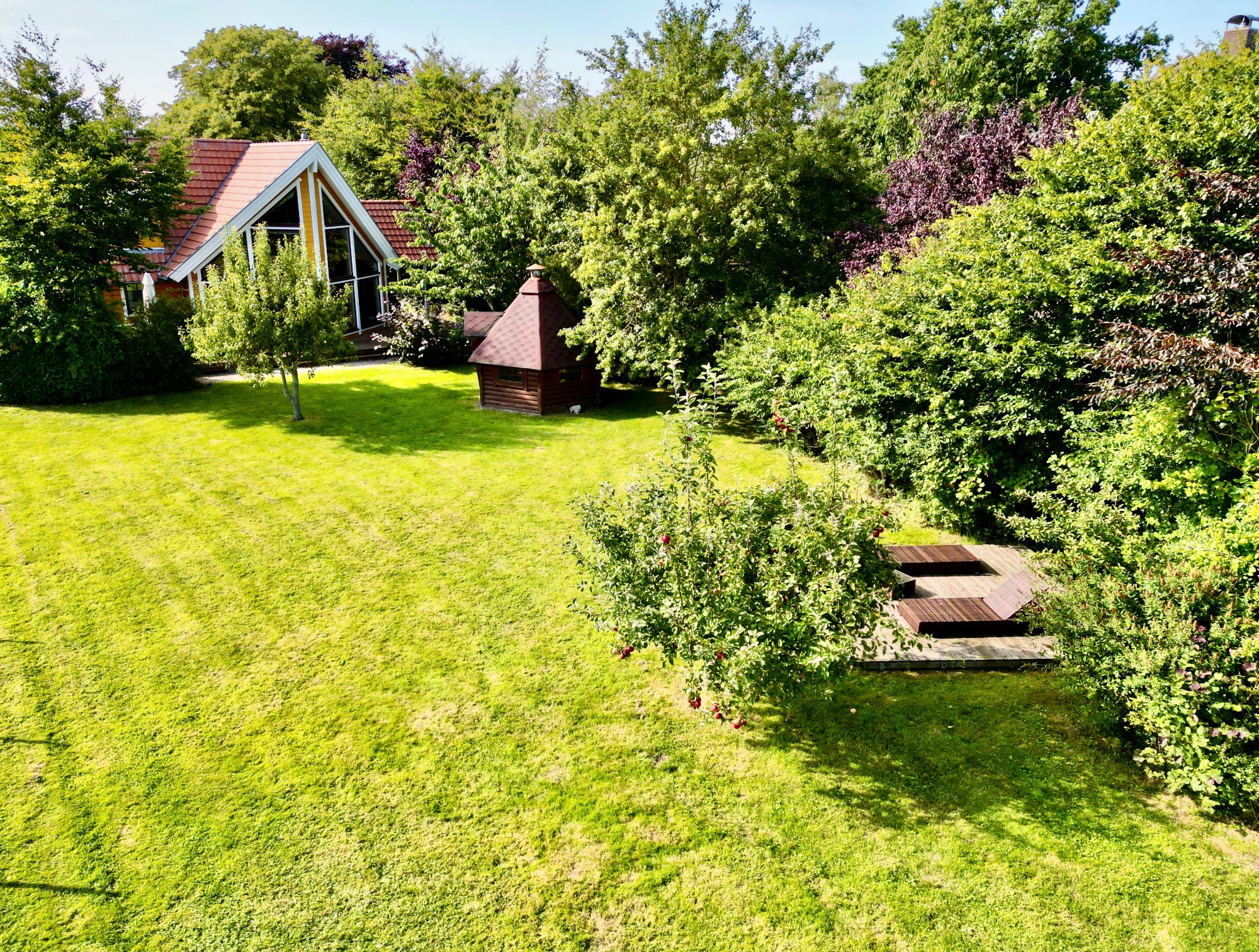 Im großzügigen Garten findet jeder sein Plätzchen. Neben der Terrasse mit Tisch und Stühlen direkt am Haus gibt es eine weitere Sonnenterrasse mit Liegen. Zudem bietet der Garten ausreichend Auslauf für einen Hund. Das Grundstück ist nicht vollständig eingezäunt.